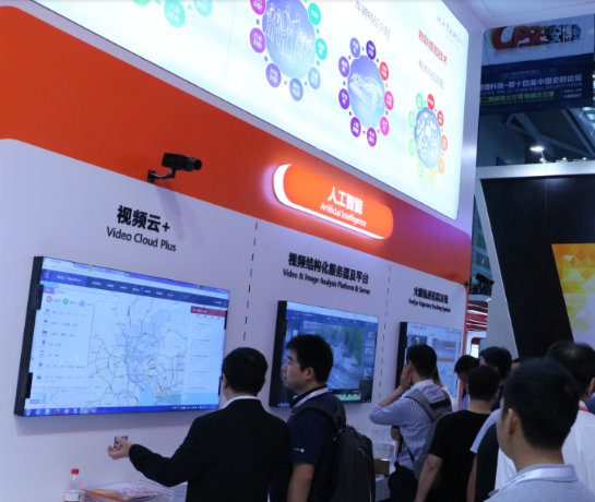 在人工智能技术区,展示的视频云+多源大数据平台立体化作战平台,以人脸识别、视频结构化、物联感知等技术为核心,实现人、地、物、 事、情等信息的采集、关联和融合,建立以视频图像为主、多种资源关联叠加的视频资源服务体系,为各级公安提供一个资源共享、能力开放的视频大数据平台,通过“前端感知—后端人工智能处理—大数据关联分析—形成抓捕、管控两类数据流”的应用模式,为基层公安机关开展立体化治安防控工作提供了“尖刀利器”。